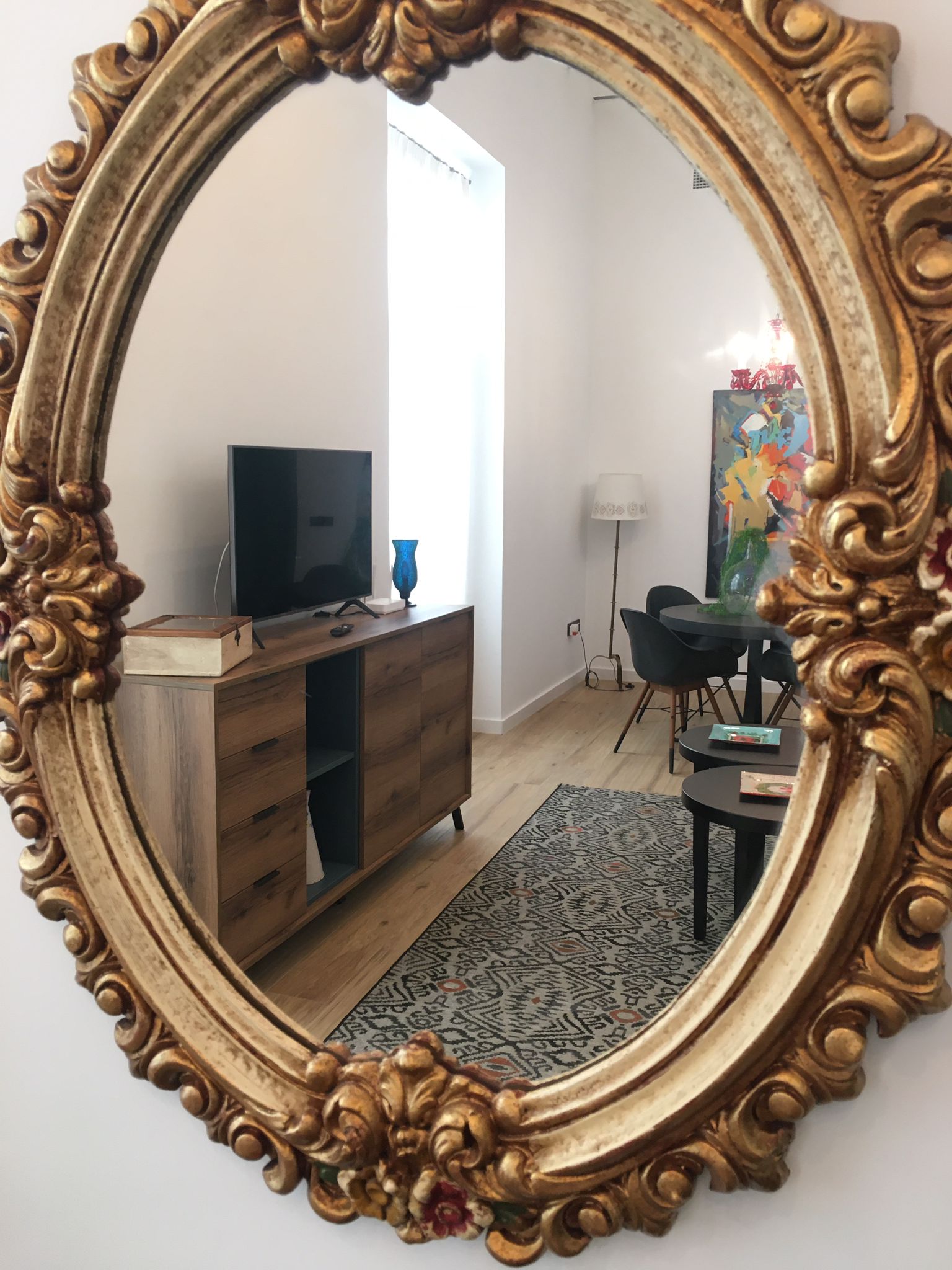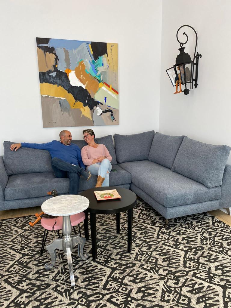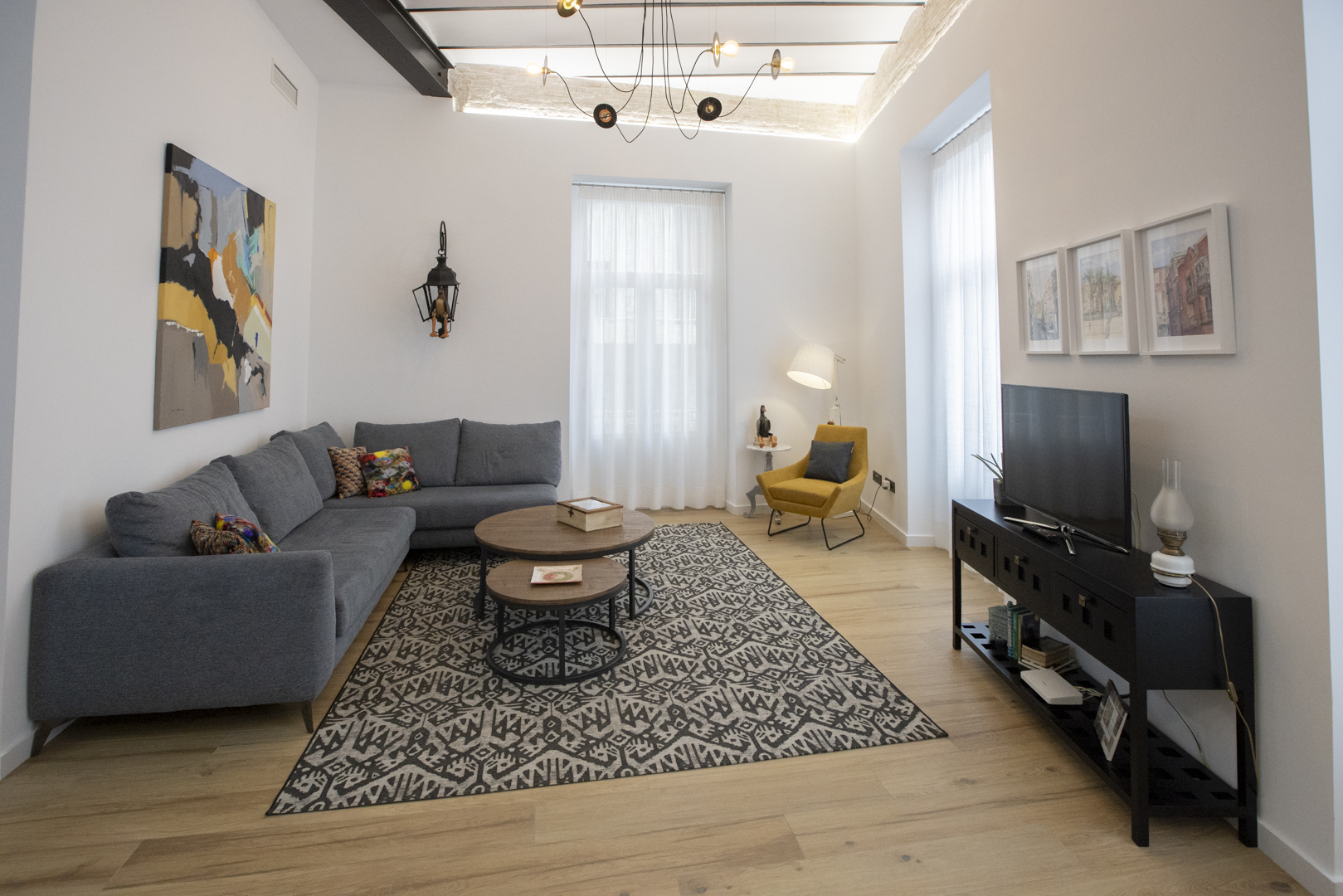 • Un amplio salón-comedor de 35 m2 con techos altos y un cómodo sofá, convertible en cama.