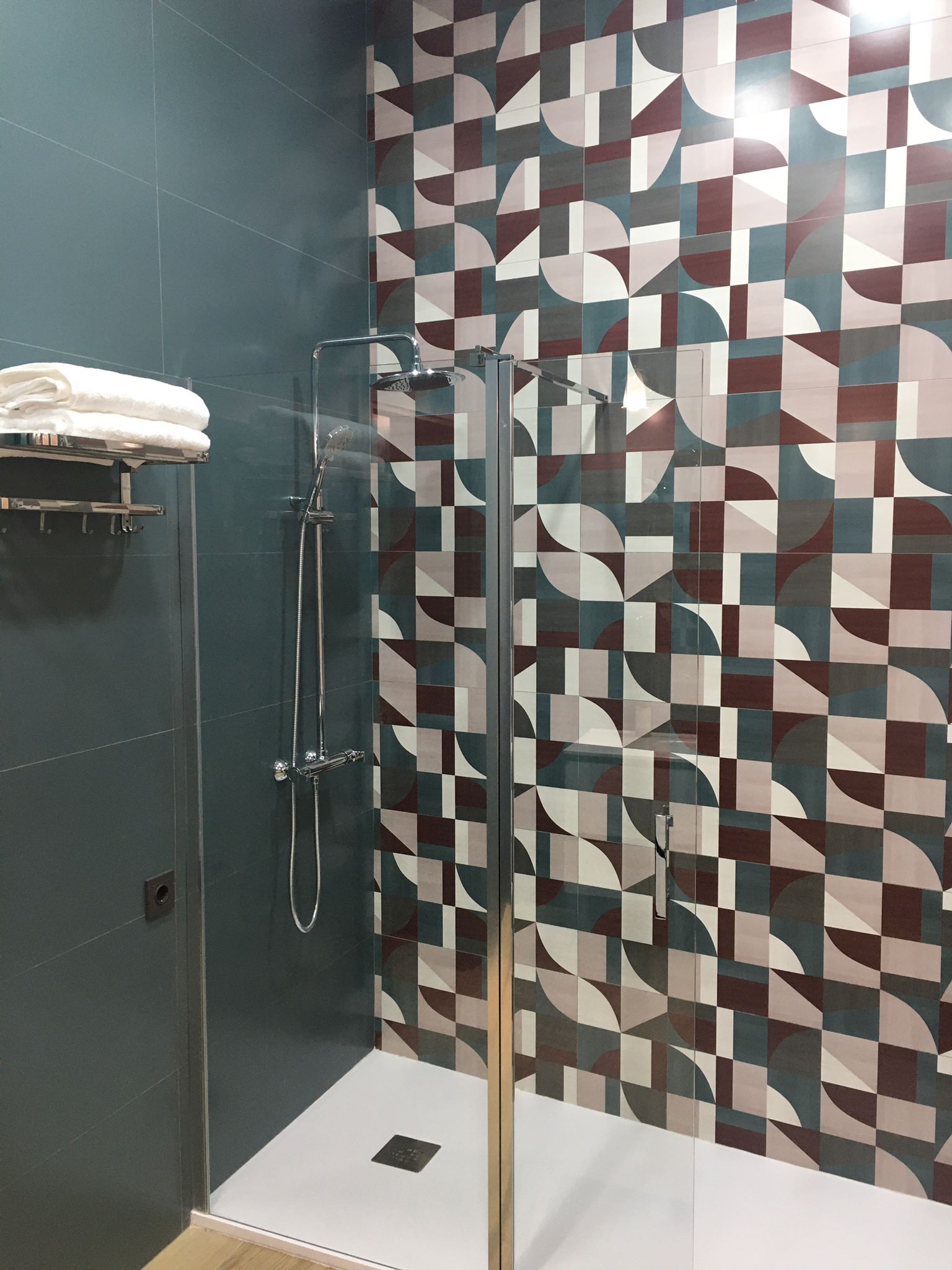 • Un baño con amplia ducha.