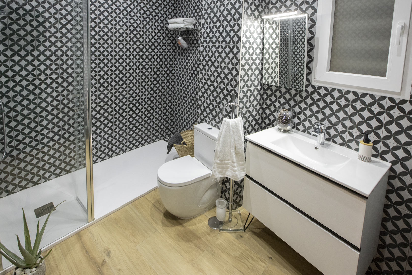 - Un baño con amplia ducha.